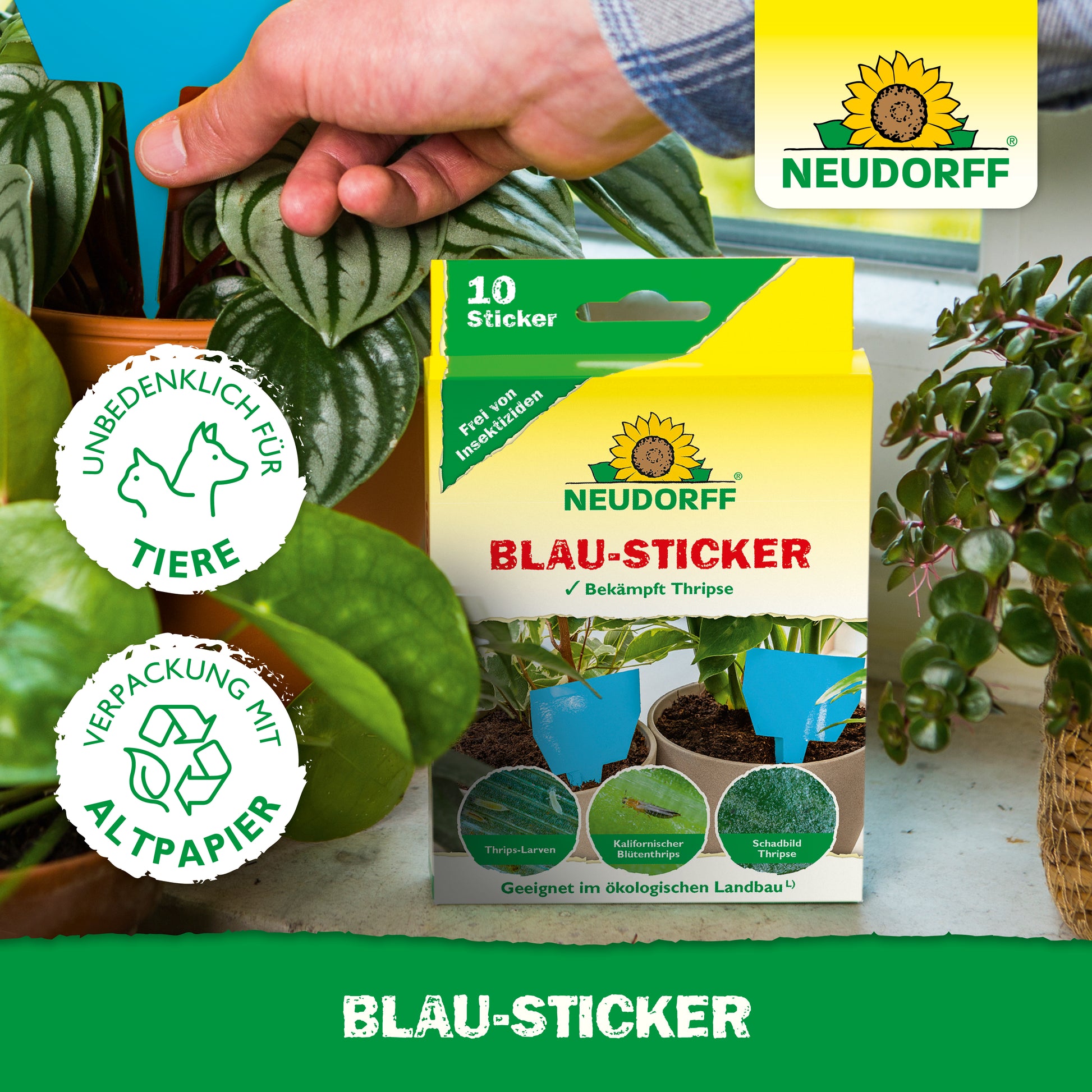 Mit über 90 % Altpapier in der Verpackung, insektizidfreier Wirkungsweise und gesundheitlicher Unbedenklichkeit sind die Neudorff Blau-Sticker eine umweltfreundliche, nachhaltige und sichere Lösung, um Pflanzen zuverlässig vor Thripsen zu bewahren.