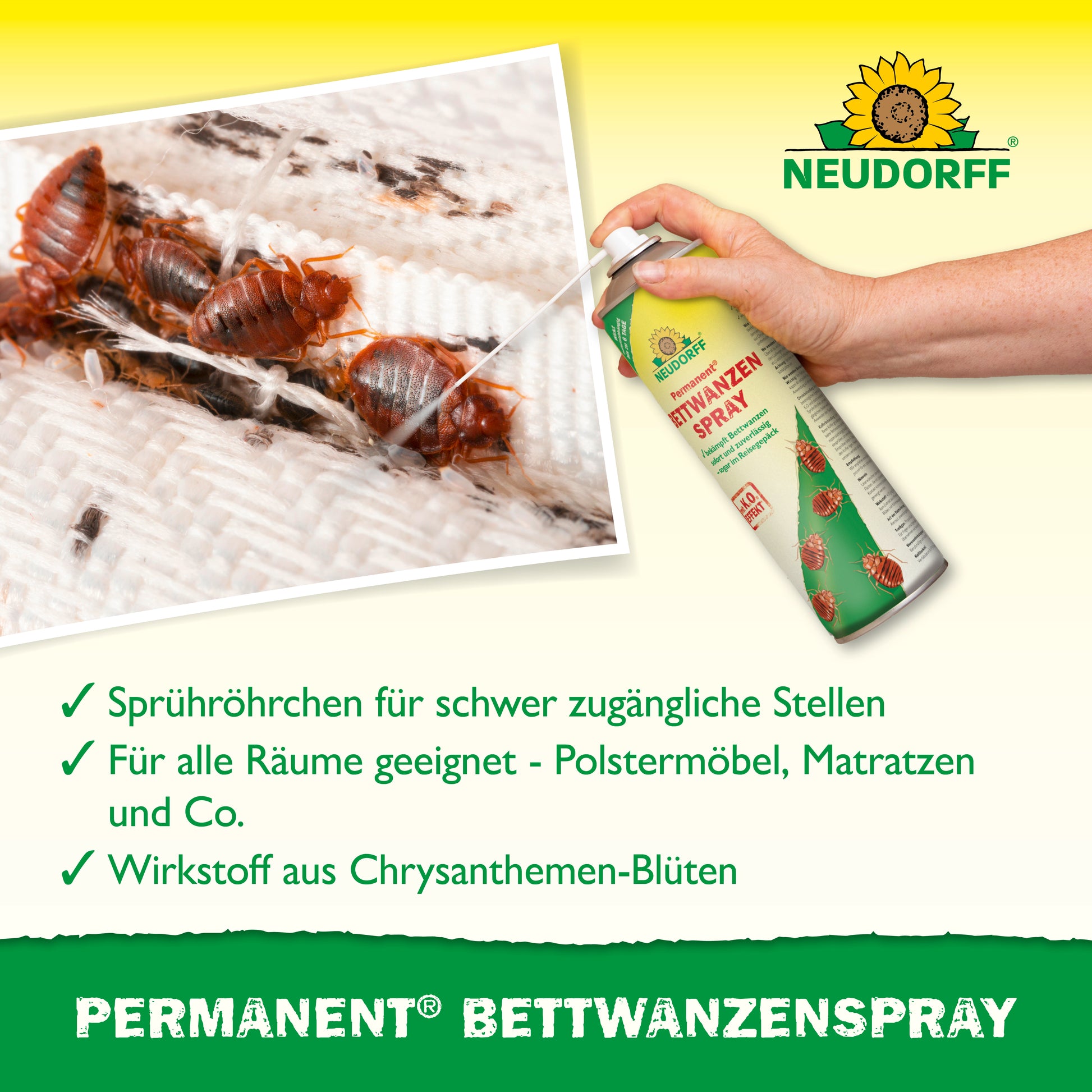 Meist werden diese Insekten aus dem Urlaub über Koffer und Reisegepäck eingeschleppt und landen daheim. Also, was tun gegen Bettwanzen? Mit dem Permanent Bettwanzenspray einfach Bettwanzen loswerden!